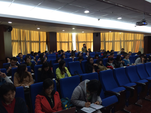 吴老师首先谈了自己教学方面的经验和心得。从开学第一节课、第一周如何教学,听写的方式,课堂语言的使用,多媒体的使用,词典的使用,让学生记笔记等小问题入手,告诉我们要上好课一定要用“心”,用心备课、用心教学。良好的班风是学习的重要保证,对于“班级管理”,吴老师在长期的班主任工作中总结出了一套方法,比如固定学生位置、物色好班长、第二周再给学生介绍免费a片的规章制度、定期举行班级活动等,另外,“微信”这一交流平台正迅速“占领”每个人的手机,建立班级微信群,及时与学生沟通交流,也是班级管理一种很好的方式。吴老师特别强调,作为留学生班的班主任,一定要严格,不要因为学生是外国人而对他们的要求有所降低,比如上课吃东西、玩手机,这在她的课堂上是绝对禁止的。但同时,作为班主任,也一定要让学生感受到来自老师的温暖,比如对缺课的学生一定要及时与他们联系,了解缺课的原因,对在学习和生活上遇到问题的学生,她一般会私下与他们聊天,为他们排忧解难,“他们就像我的孩子一样”这句话吴老师在沙龙上说过好几次。也许正是 “严格”和“温情”双管齐下,让吴老师赢得了学生的心,建设了一个又一个优秀的班集体。