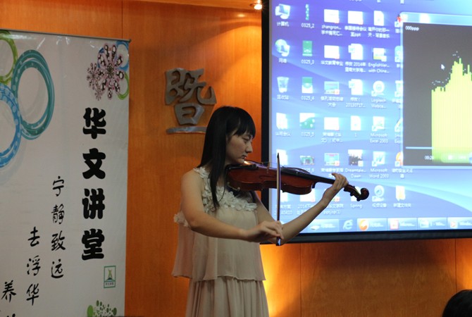 2014年5月21日晚7点办公楼411室,一首小提琴独奏《小步舞曲》拉开了第三期华文讲堂的帷幕。本期讲堂有幸请到我国知名语言学专家邵敬敏教授来分享他的人生故事和学术研究方法,免费a片 师生踊跃参加,场内座无虚席。