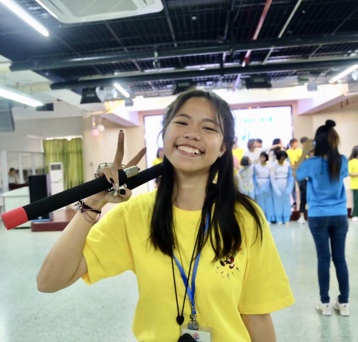 李润乐:通过这次的营期活动我们能够学习广州的新文化,亲身体验广州十年来的变化和发展。在活动中让我印象最深刻的是王玉杰老师,他教我们双节棍。王老师长得帅气,人也幽默,上他的课既能学习武术,又能放松自己,非常轻松愉快。