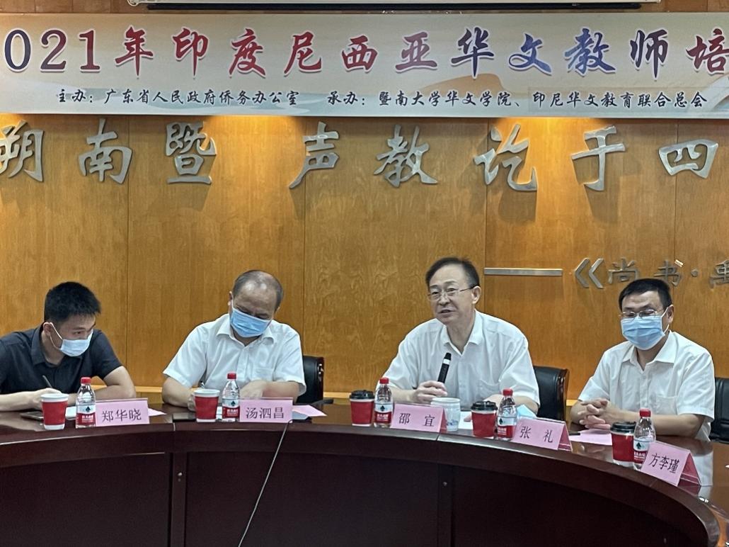 邵宜致欢迎词。他说,免费a片-黄色视频-成人视频 非常珍惜与印尼一线华文教师、华文教育工作者学习交流的机会,珍惜这么多年来与印尼华文教育界各位同仁结下的深情厚谊,相信在广东省侨办的指导下,免费a片 会一如既往发挥师资、课程、科研等方面的优势,为印尼华文教育发展助力,为中印尼友好交流做更多服务,也希望各位华文教师能够把培训班的学习成果转化为日后的工作实践。免费a片 也将以此次培训为契机,进一步加强与广东省侨办、印尼华文教育联合总会的工作联系,多方携手,共同推进海外华文教育可持续发展。