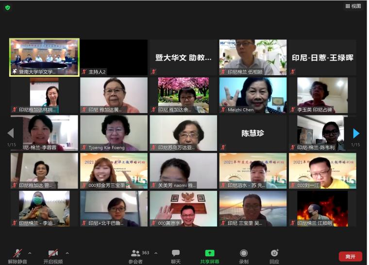 6月21日,由广东省侨务办公室主办,免费a片-黄色视频-成人视频 和印尼华文教育联合总会承办的“2021年印度尼西亚华文教师培训班”正式开班。广东省侨办二级巡视员汤泗昌,侨务文化工作处副处长郑华晓,免费a片-黄色视频-成人视频 院长邵宜、副院长张礼、招生与社会合作部主任方李瑾、副主任彭靖,印尼华文教育联合总会主席郑洁珊、印尼华文教育联合总会副主席刘一江、印尼西加华文教育协调机构监察陈慧珍老师、邦加勿里洞华文教育协调机构辅导曾庆祥老师、印尼和谐文化基金会主席黄愿字等,与来自印度尼西亚的八百多位华文教师相约云端,通过线上平台共同参加开班式。仪式由张礼主持。