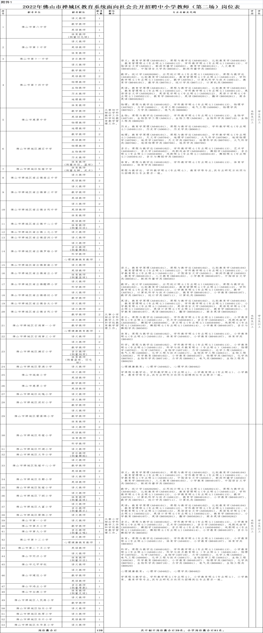 2.2022年佛山市禅城区教育系统面向社会公开招聘中小学教师120人(第二场)公告