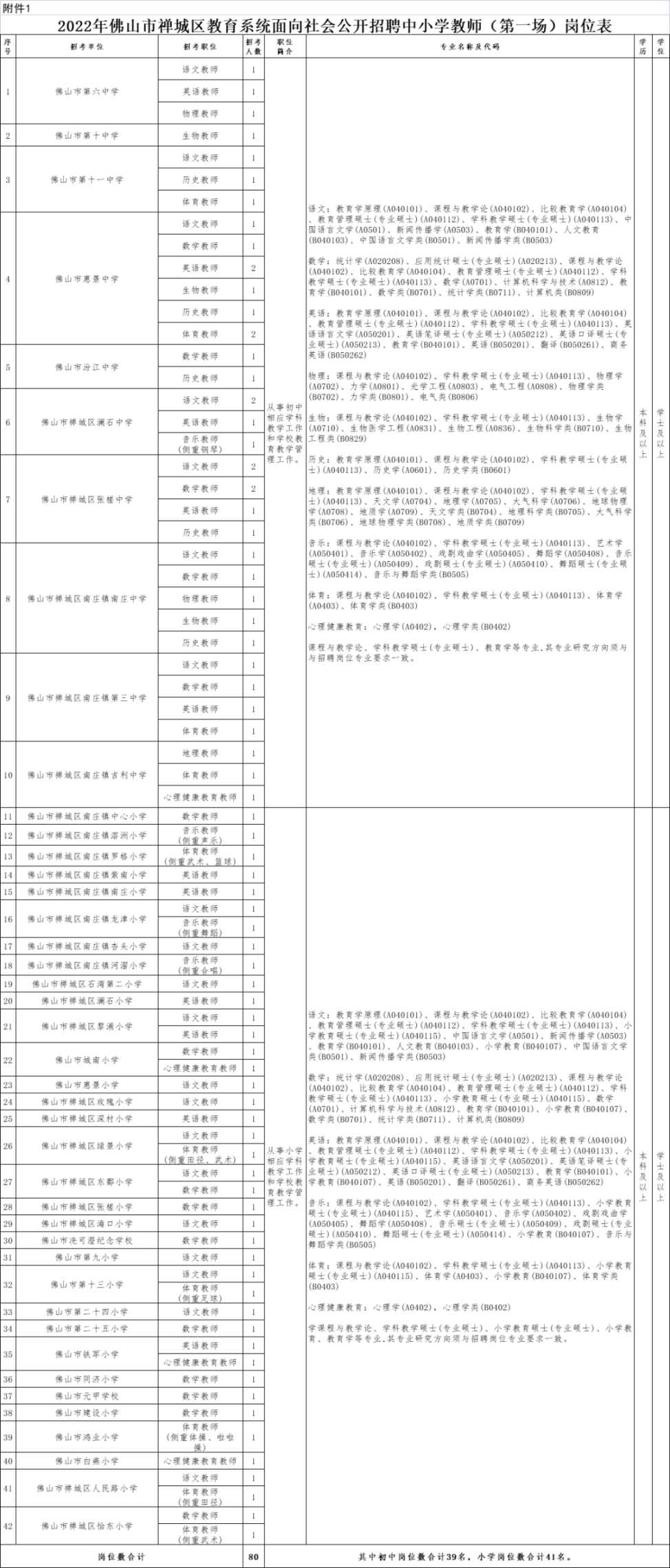 1.2022年佛山市禅城区教育系统面向社会公开招聘中小学教师(第一场)公告
