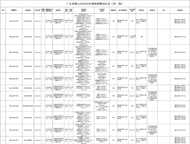 3.广东省鹤山市2022年教师招聘(第三场)暨引进名教师公告
